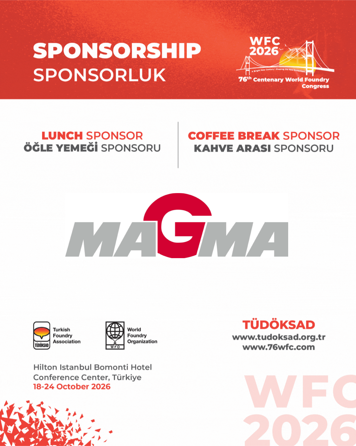 The 76th World Foundry Congress, one of the most prestigious international events in the foundry industry and organized every two years, under the umbrella of the World Foundry Association (WFO), will be held in Istanbul from October 18-24, 2026, hosted by the Turkish Foundry Association (TÜDÖKSAD). As MAGMA Turkey, we are excited, proud, and delighted to be contributing to a lunch and a coffee break.