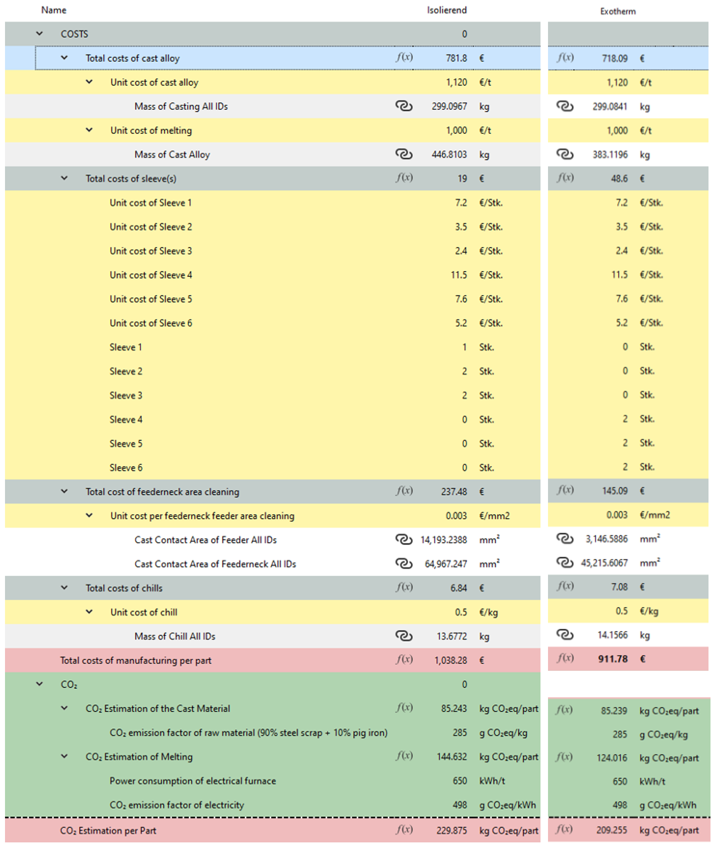 MAGMA ECONOMICS, maliyetlerin, enerji tüketiminin ve CO₂ emisyonlarının kalite kriterleriyle birlikte doğrudan MAGMASOFT®'ta nicel olarak değerlendirilmesini sağlar.